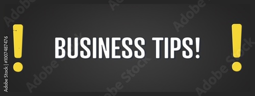 Business Tips. A blackboard with white text. Illustration with grunge text style.