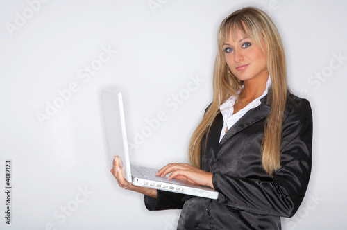 appearance, attire, attractive, beautiful, black, business, businesswoman, casual attire, caucasian, confident, corporate, cute, design, employee, executive, gorgeous, isolated, jacket, job, people, person, personal, professional, sexy, shirt, sophisticated, studio, success, suit, wear, woman, laptop, computer, wireless, cyberspace, browsing