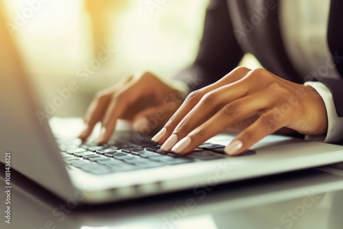 business woman close up of a person typing on a laptop computer