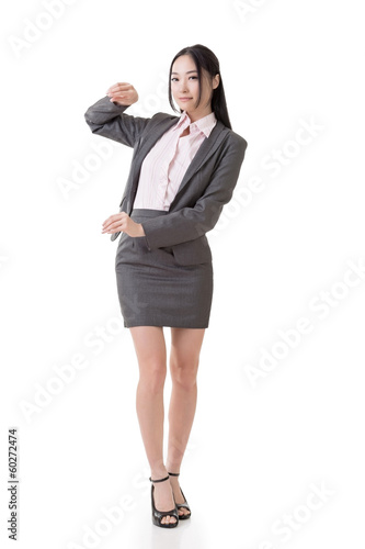 woman, female, lady, businesswoman, asian, asia, china, chinese, east, japanese, portrait, looking, business, person, occupation, korean, work, career, job, beauty, beautiful, glamour, face, young, 20s, attractive, full, length, isolated, empty, message, presentation, showing, signs, space, hand, presenting, holding, model, pose, gesture, show, instruction, introduce, racked