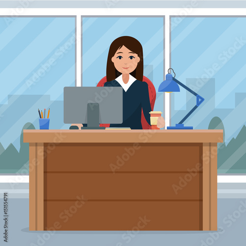Business woman on the table in office.