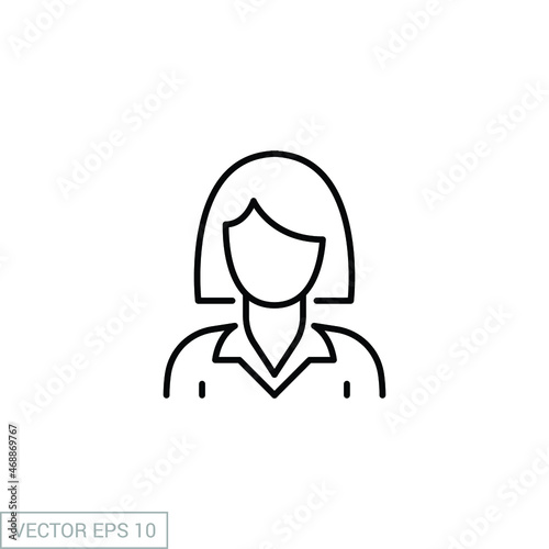 Business woman thin line icon. Female employee, businesswoman avatar, user symbol. Simple outline style linear stroke, manager, people, person silhouette, head pictogram. Vector design isolated EPS 10