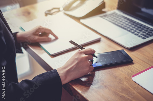 woman, businesswoman, phone, app, portable, entrepreneur, review, calculate, analysis, closeup, inspecting, marketing, touch screen, saving, sitting, female, suit, checking, digital, commerce, banking, modern, electronic, smartphone, accounting, datum, financial, document, professional, table, work, desk, finance, mobile, online, pen, holding, report, account, office, laptop, notebook, using, person, calculating machine, technology, woman, hand, business, phone