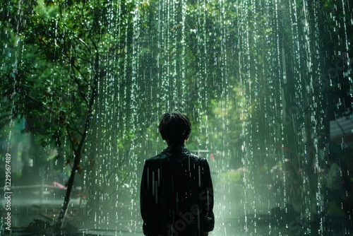 rain, businessman, park, nature, city, urban, watching, contemplating, peace, serenity, calmness, environment, green, tree, water, drop, falling, refreshing, moment, contemplation, mindfulness, meditation, relaxation, solitude, escape, outdoors, weather, climate, atmosphere, scenery, landscape, view, perspective, back, alone, suit, professional, work, life, balance, harmony, inspiration, beauty, wonder, awe, peaceful, calm, quiet, still