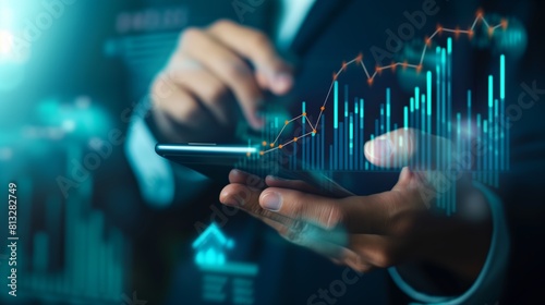 businessman, financial, growth, tablet, analysis, chart, corporate, evening, strategy, decision-making, technology, finance, business, tracking, dynamic, glowing, screen, digital, investment, stock, market, portfolio, interactive, datum, performance, trend, report, electronic, device, touch screen, professional, executive, modern, visualisation, economy, figure, planning, management, success, office, intelligence, forecasting, virtual, interface, network, hand