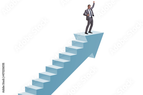 Businessman climbing career ladder in business concept