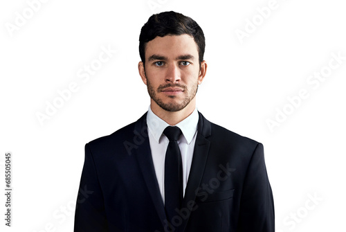 Businessman, confident or portrait with professional, fashion suit or corporate career. Young guy, entrepreneur or serious face for job pride with ambition and isolated on transparent png background