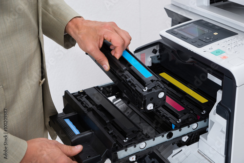 Businessman Fixing Cartridge In Photocopy Machine