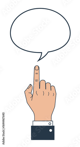 pointing finger, digital illustration, speech bubble, hand gesture, marketing, advertising, icon, symbol, white background, design element, graphic art, business attire