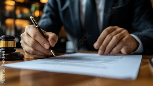 Businessman hand stamping document with rubber stamp on desk, close-up of hands using stamp for paperwork, symbolizing trust and official documentation, selective focus in office environment.