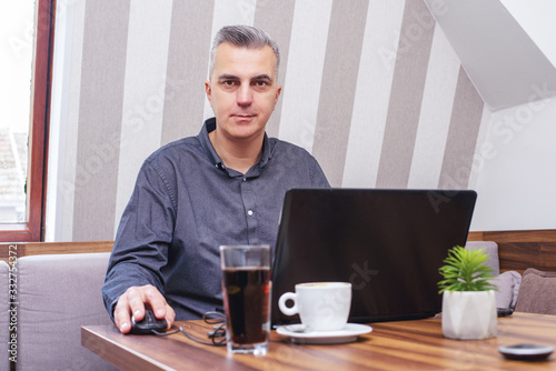adult, adults only, business, businessperson, businessman, button down shirt, cafes, city, coffee cup, communication, computer, cup, desk, drink, entrepreneur, intelligence, cyberspace, laptop, lifestyle, male, smiling, breakfast, home, happy, people, photogenic, office, young, sitting, working, man, eating, person, portrait, table, food, newspaper, reading
