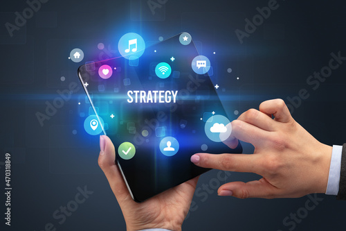 strategy, smart, multimedia, social network, social, communication, hand, online, media, concept, young, lifestyle, web, contact, cyberspace, messaging, app, flex, prototype, folded, futuristic, mobile phone, display, mobile, phone, flexible, curved, modern, elastic, unfold, innovation, cellular, touch, touch screen, screen, mobile phone, phone, future, device, smartphone, contraption, foldable