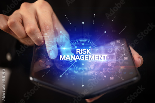 Businessman holding a foldable smartphone, new business concept
