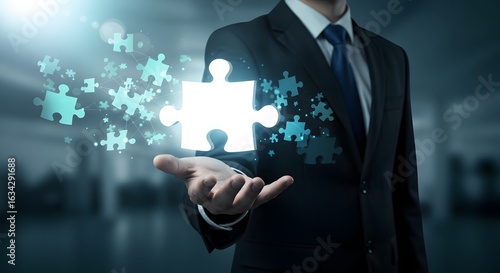 puzzle, piece, businessman, suit, attaching, hand, holding, solution, strategy, teamwork, collaboration, idea, innovation, success, business, concept, connection, network, datum, information, digital, technology, abstract, background, corporate, management, problem, solving, assembling, oneness, integration, part, whole, project, goal, achieve, progress, growth, vision, future, opportunity, creativity, brainstorming, decision, planning