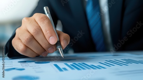 Businessman in a suit writing on paper, professional document preparation and contract signing