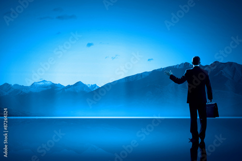 businessman, nature, view, adult, back, blue, business, calm, caucasian, clean, crystal, male, freedom, happiness, holiday, isolation, lake, open, people, pure, relax, river, skyline, success, suit, summer, travel, water, man