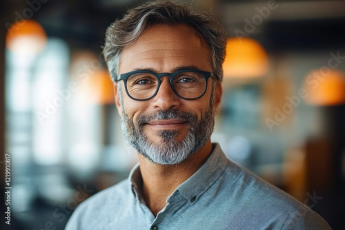 Businessman in Office Portrait Mature Middle Aged Executive Corporate Manager Smiling Success