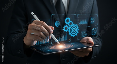 business, technology, datum, finance, strategy, innovation, management, planning, growth, success, future, digital, interface, chart, graph, statistic, performance, progress, report, presentation, tablet, stylus, man, suit, gear, automation, system, network, computer, software, hand, concept, businessman, cyberspace, mobile, media, social, communication, screen, web, global, icon, phone, connection, symbol, gear, people, touch