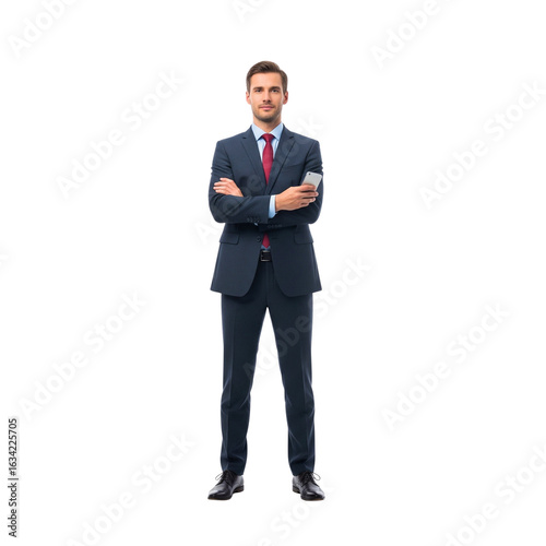 businessman, business, suit, standing, people, executive, person, photogenic, full, success, man, manager, confident, smiling, attaching, white background, full-length, professional, work, men at work, successful, 1, studio, corporate, smile