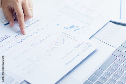 Businessman or Manager work with financial paper report, business planing and analysis of growth concept.