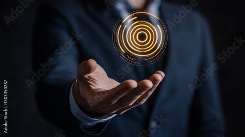 Businessman presenting a virtual target board symbolizing business success and goal setting