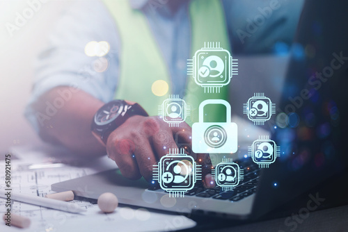 Businessman presenting futuristic business world metaverse graphic. In the form of innovation in digital business processing technology, innovation of the 21st century