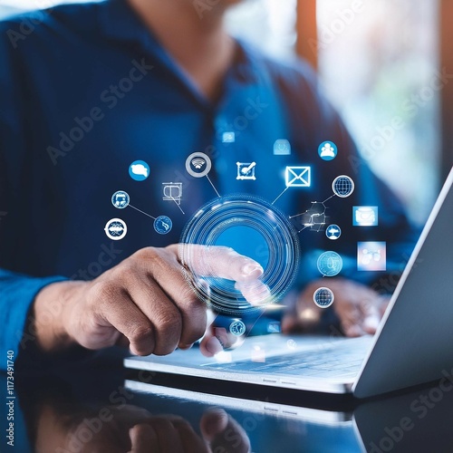 business, hand, technology, network, cyberspace, social, mobile, media, web, concept, icon, screen, computer, touch, communication, businessman, phone, tablet, connection, digital, symbol, global, people, tech, buttons
