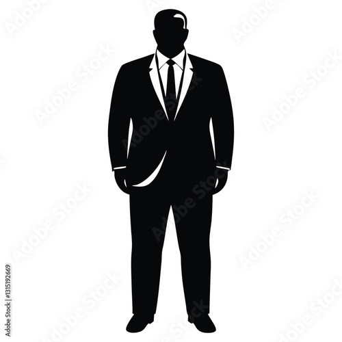 Businessman Silhouette Vector Art, Elegant Black Suit Silhouette on White Background, Professional Corporate Icon Design