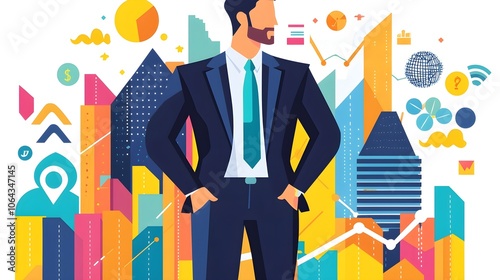 statistic, ambition, opportunity, progress, leadership, target, vision, graph, entrepreneur, infographic, investment, strategy, chart, achievement, analysis, future, skyline, economy, financial, development, success, datum, growth, graphic, market, businessman, illustration, business, modern, abstract, design, style, vector, colourful, city, flat