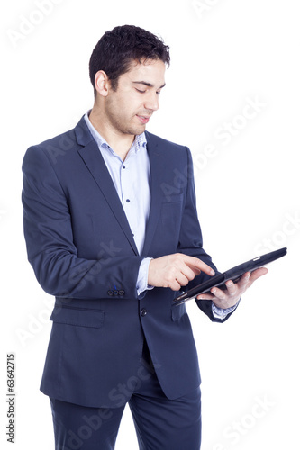 tablet, business, man, white, background, businessman, executive, guy, adult, latin, reader, male, young, entrepreneur, isolated, photogenic, net, attractive, corporate, success, tech, studio, application, casual attire, people, technology, touch, computer, cute, smile, web, hispanic, person, professional, successful, online, content