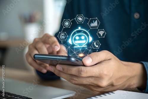 ai, support, business, communication, mobile, technology, smartphone, digital, app, automation, smart, innovation, user, client, service, touch, interface, concept, online, datum, network, futuristic, message, icon, modern, software, cyberspace, human hand, messaging, interaction, application, future, information technology, cloud, wireless, connection