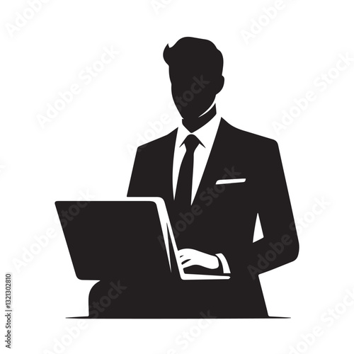 Businessman using laptop vector design. Office man using laptop vector illustration.