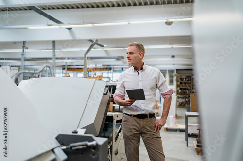 businessman, tablet, factory, occupation, engineer, print, working, standing, company, future, industry, cyberspace, mobility, online, production, connection, vision, economy, digital, indoor, portrait, employee, technology, business, machine, accessibility, contemplation, wireless, expertise, thinking, white shirt, wi-fi, smart, digitization, plant, enterprise, mature, man, group, 1, people