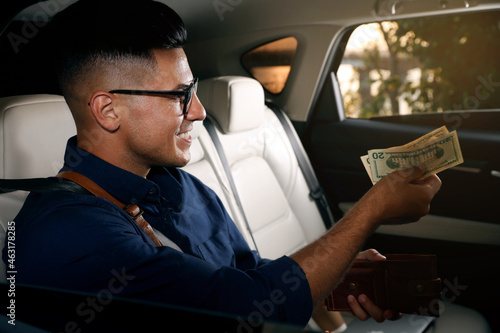 background, adult, person, holiday maker, travel, business, lifestyle, fast, transport, service, caucasian, auto, automobile, car, city, vehicle, client, client, urban, ride, traffic, passenger, taxi, cab, expensive, private, transfer, luxury, confident, photogenic, inside, businessman, male, man, happy, smiling, road, billfold, giving, destination, money, cash, banknote, pay, dollar, fare, goggles, modern