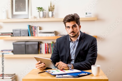 businessman, business, office, computer, work, people, desk, person, manager, suit, sitting, table, boss, photogenic, success, executive, attaching, professional, writing, working, job, document, men at work, pen, confident