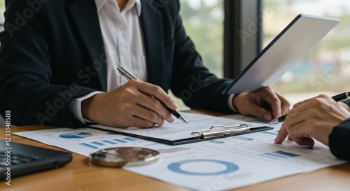 business, finance, meeting, analysis, document, chart, graph, strategy, planning, investment, report, datum, review, teamwork, collaboration, office, workplace, professional, corporate, financial, accounting, management, consulting, marketing, sale, economy, growth, profit, loss, budget, desk, laptop, pen, paper, clipboard, table, people, hand, contract, figure