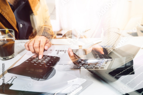 businesswoman hand using smart phone, tablet payments and holding credit card online shopping, omni channel, digital tablet docking keyboard computer at office in sun light