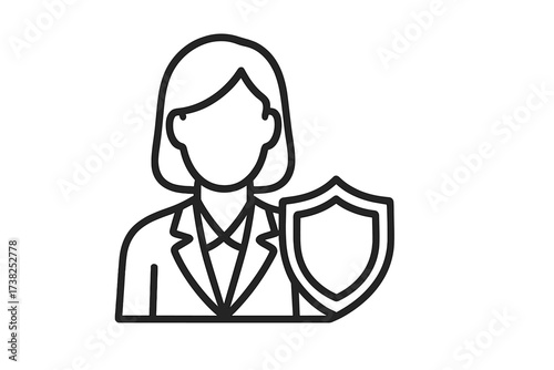 shield, protection, security, insurance, business, woman, safety, icon, corporate, vector, symbol, professional, employee, illustration, defense, safeguard, line, outline, secure, guarantee, privacy, datum, agent, manager, person, female, avatar, holding, care, finance, legal, support, service, risk, management, modern, pictogram, graphic, simple, minimal, web, app, design, isolated