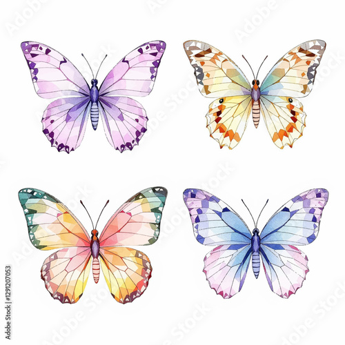 Butterfly collection. Watercolor illustration. Colorful butterflies clipart set. Baby shower design elements. Party invitation, birthday celebration. Spring, summer decor