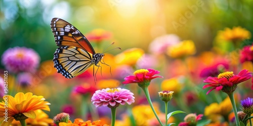 Butterfly gracefully landing on colorful flowers in a garden , colorful, butterfly, wings, outdoors, beauty, graceful