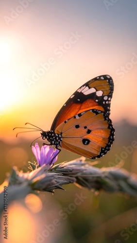 butterfly, flower, sunset, nature, orange, wing, insect, beautiful, peaceful, gold, sunlight, purple, macro, detail, wildflower, closeup, vibrant, soft, serenity, morning, evening, sharpened, natural