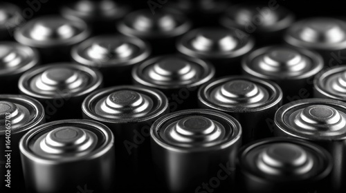 Button Cell Battery Array: Close-Up View of Numerous Silver Coin Batteries in a Grid