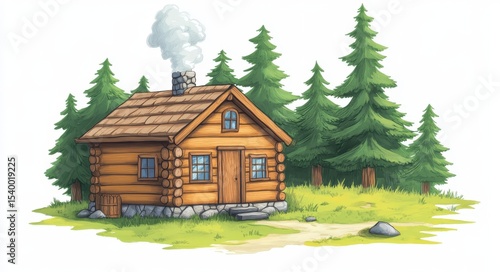 cabin, cartoon, log cabin, wilderness, remote, outdoors, nature, forest, forestry, alone, isolated, background, holiday, log, axe, alpine, pine tree, natural, scenery, tiny, hill, wild, smoke, scenic, hut, home, scene, wild west, small