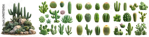Cactus - Hardy and spiky desert plants with unique shapes Isolated on Clear White Background Highly Detailed