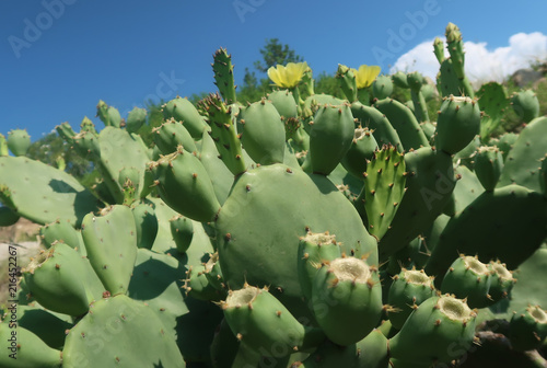 cactus, prickly, pear, green, wild, nature, wilderness, summer, thorn, succulent, closeup, natural, sharp, desert, flower, summer, flora, closeup, blue, sky, growth