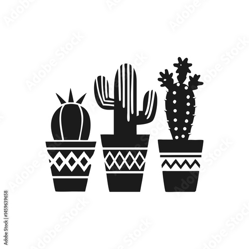 Cactus illustration silhouette potted vector black cactus silhouette Big Cactus silhouette vector illustration isolated on white background