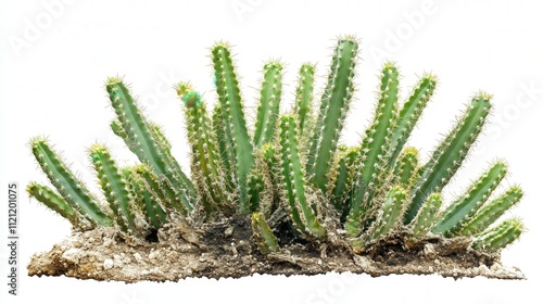 cactus, its rich green color and sharp spines standing out clearly against a blank white background, highlighting the beauty of its natural form