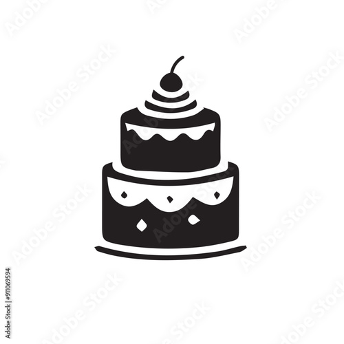 Cake icon. Black bakery icon. Simple silhouette cake flat, design.