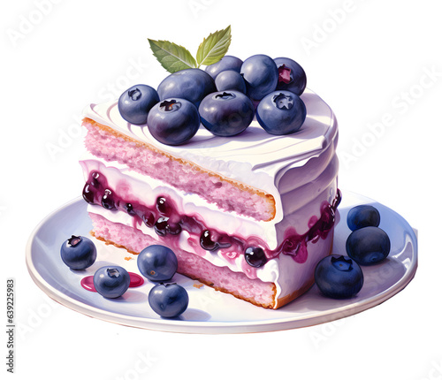 Cake slice with berries watercolor illustration isolated on transparent background