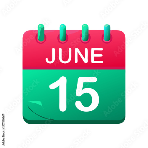 Calendar Icon: June 15th June 15th Date Illustration Colorful Calendar - Fifteenth of June Save the Date - June 15 Vector Calendar Showing June 15
